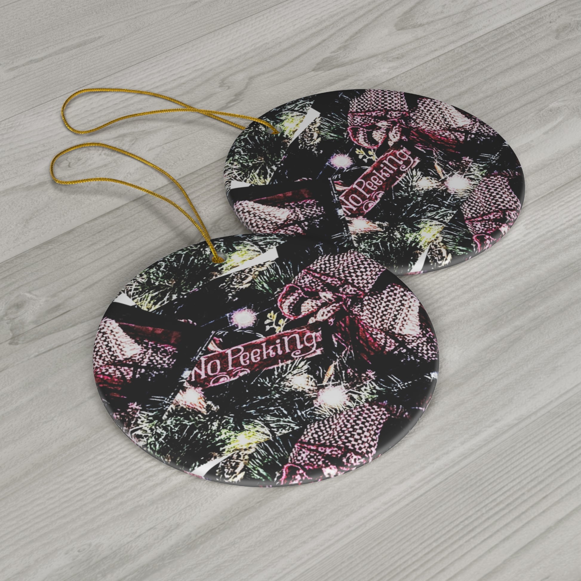 Holiday Ceramic Ornament - "No Peeking" Christmas Decoration